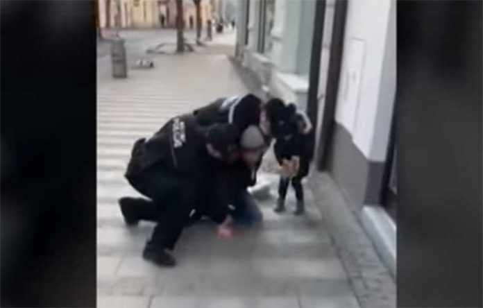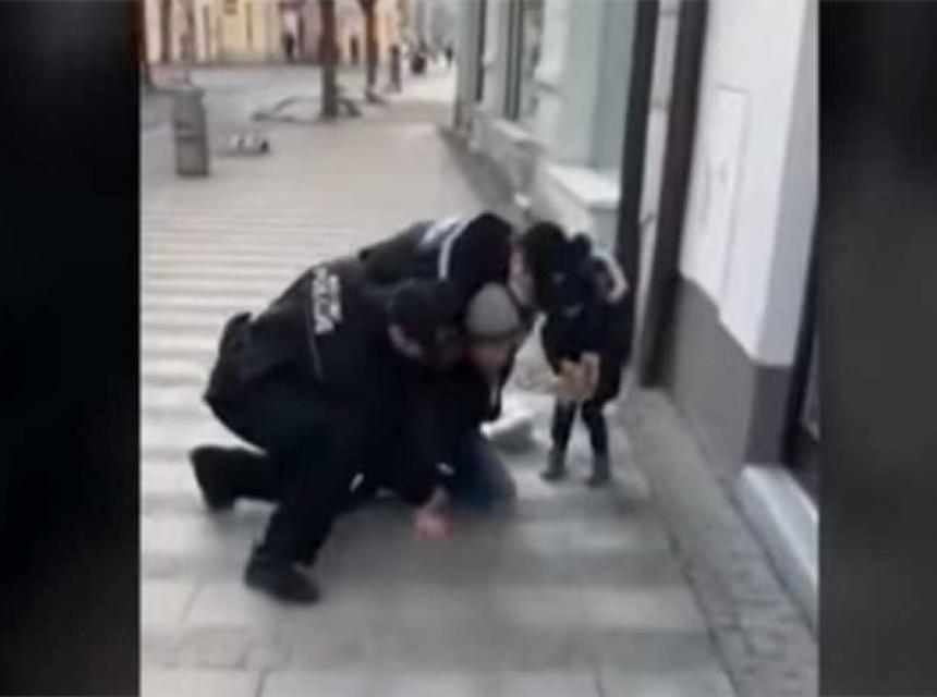 Čeh je bio sa djetetom u šetnji kada ga je policija zaskočila jer nije ispoštovao mjere i odlučila da ga privede. U sljedećem trenutku, oborili su ga na pločnik i legli preko njega dok je dijete neutješno plakalo.