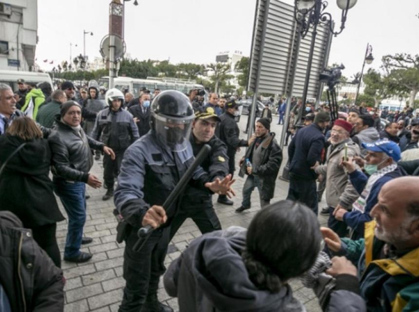 Policija je spriječila demonstrante da postave svoje šatore nakon čega je došlo do sukoba demonstranata i policije koja je upotrijebila suzavac kako bi rastjerala desetine demonstranta. Demonstranti su se okupili s ciljem odbacivanja nastavka procesa državnog udara i skretanja s demokratskog puta u Tunisu.