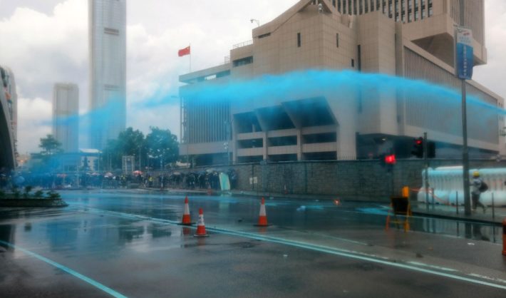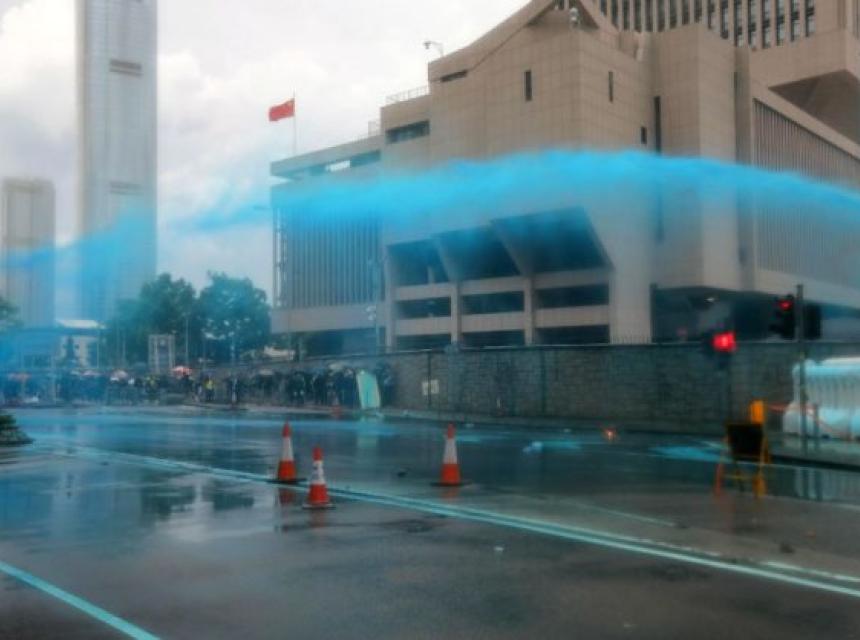 No mnogima je u oči upalo da policija u Hong Kongu ne koristi običnu vodu u vodenim topovima, nego vodu obojenu u plavo.