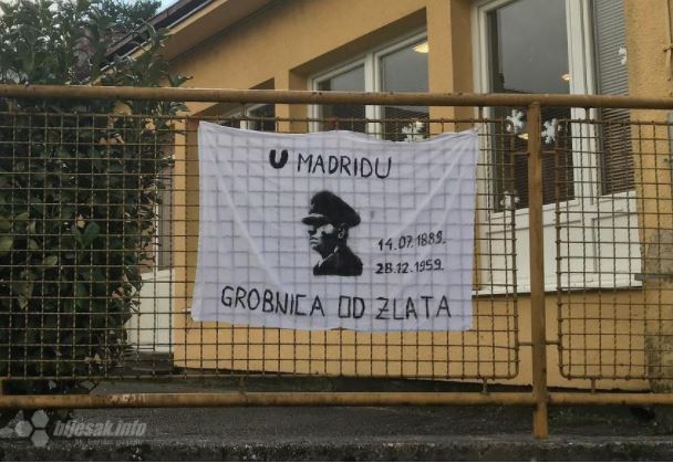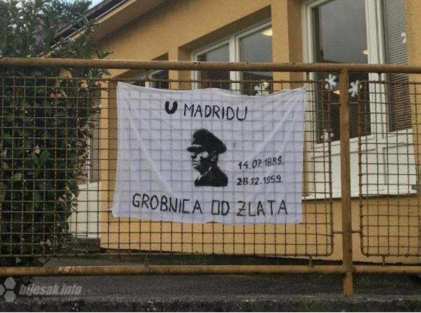 Transparent s likom ustaškog poglavnika Ante Pavelića osvanuo je jutros na ogradi vrtića "Trnoružica" u Ulici bana Jelačića u Širokom Brijegu.