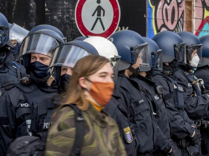 Demonstrirali su protiv pristalica inicijative Querdenken, čiji pripadnici smatraju da se restriktivnim mjerama smanjuju ljudske slobode, a takođe su odlučili da održi skup u subotu poslijepodne.