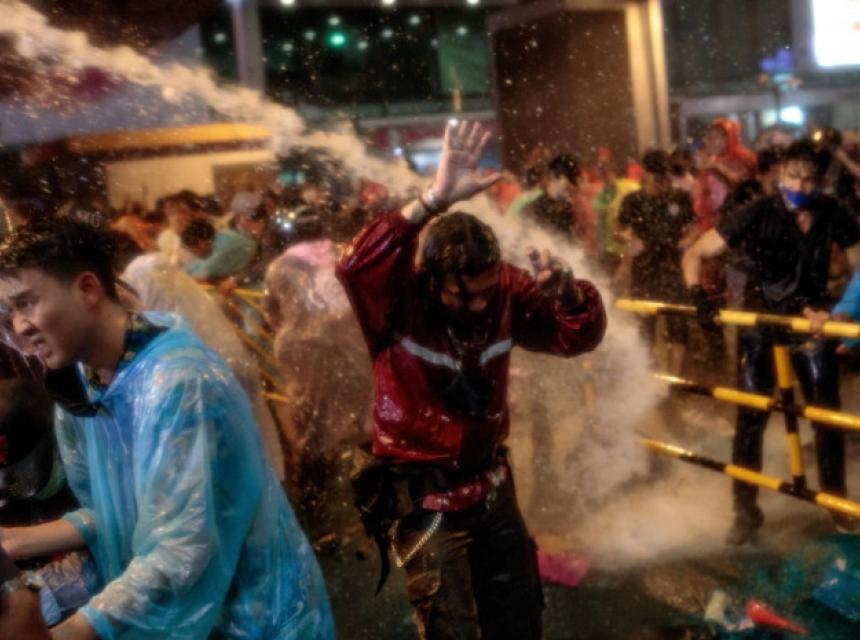 Policija je danas navečer u Bangkoku vodenim topovima rastjerala više stotina prodemokratskih demonstranata koji su se oglušili na zabranu okupljanja proglašenu u četvrtak.