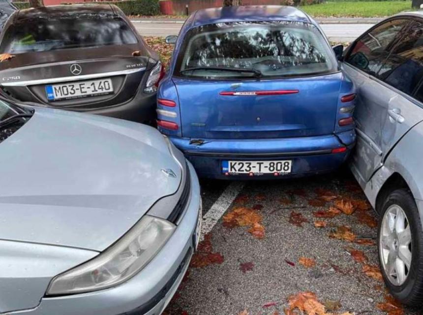 Ono što je do sada utvrđeno jeste da je nesavjesni vozač prvo udario u automobil koji je bio parkiran na sredini parkinga, a zatim ga nasilnički gurao na vozila koja su bila parkirana bočno.