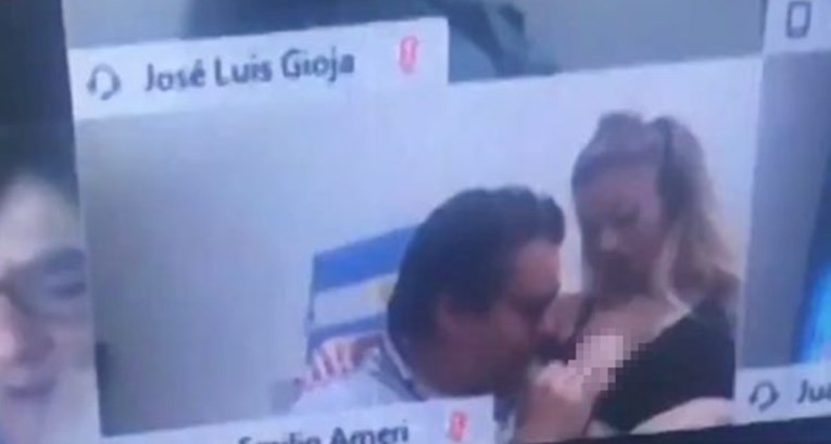 Tokom sjednice u kojoj je većina političara učestvovala virtuelno, putem Zooma, Juan Emilio Ameri na ekranu se pojavio s mladom ženom u krilu kojoj je zatim poljubio grudi.