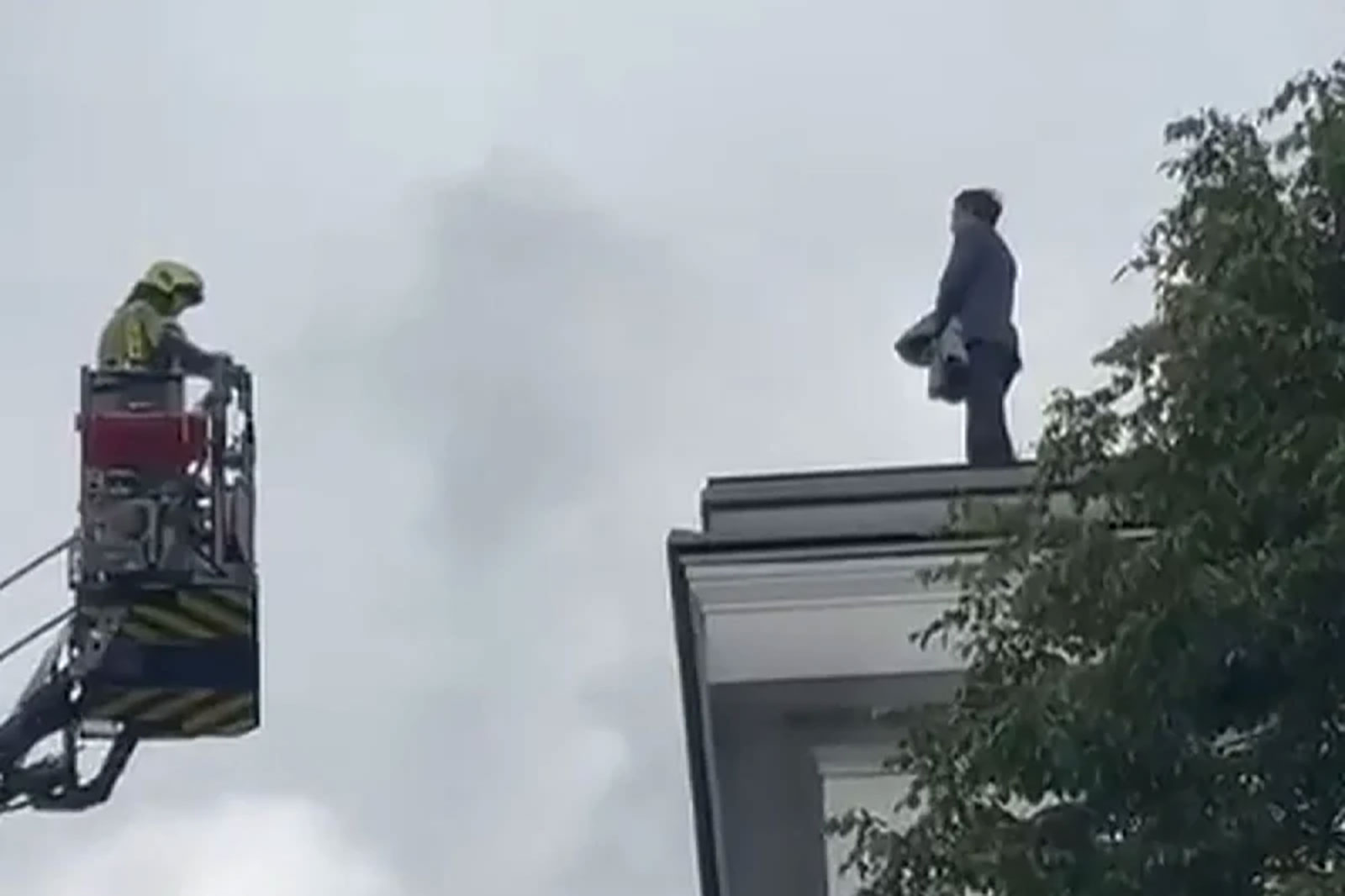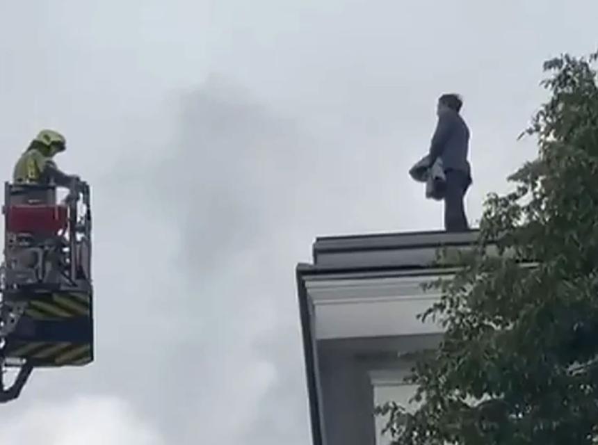 Vatrogasci su mu potom donijeli merdevine, a poslanik je izrazio spremnost da se spusti sa krova, prenijela je agencija STA. Kasnije je to i učinio.
