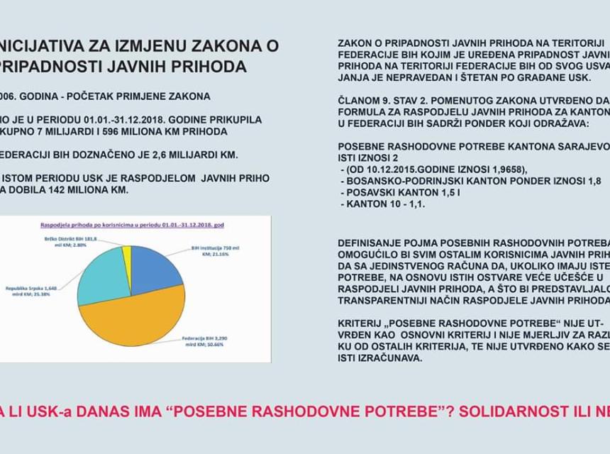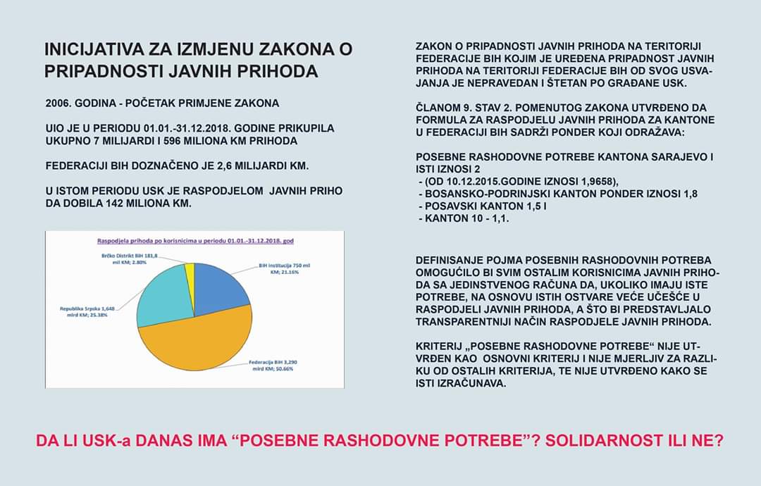 - Tražimo od Parlamanta FBiH izmjenu Zakona o pripradnosti javnih prihoda i uvođenje koeficienta za posevne rashodovne potrebe koje USK-a ima zbog migranste krize!
