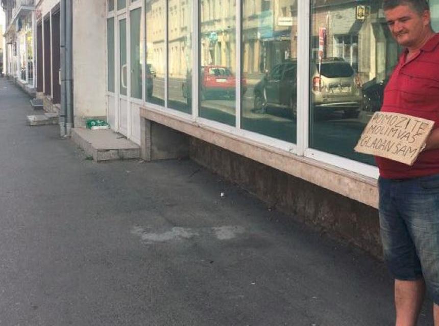 Tako se danas dogodio slučaj koji je zgrozio sve one koji su upoznati sa istim, naime, policija je privela čovjeka koji je svakodnevno mirno, nekad sjedeći, nekad stojeći sa komadom kartona u ruci i šuteći sa porukom napisanom na kartonu molio građane za doslovno komad kruha.