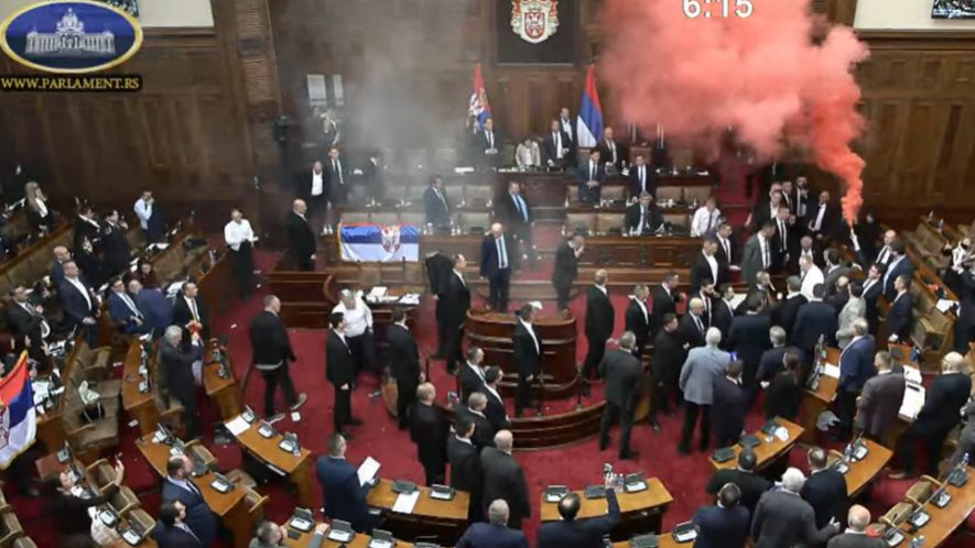 Podsjećamo, ranije je u Skupštini Srbije nakon usvajanja dnevnog reda, došlo je do guranja i tučnjave među poslanicima, poslije čega su bačene baklje.