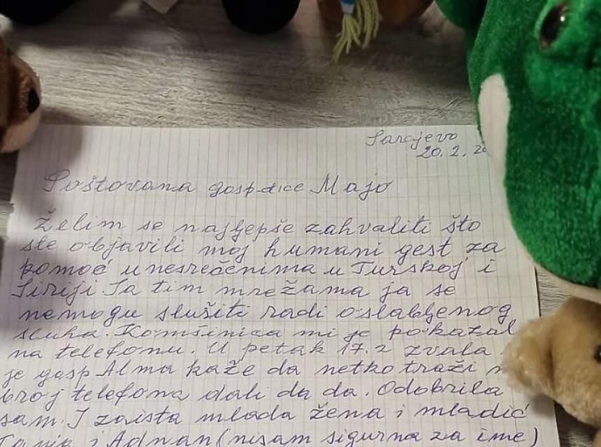 Podsjećamo, 91-godišnja baka Milka iz Sarajeva poslala je na adresu udruženja Pomozi.ba pismo u kojem se nalazilo 10 KM uz poruku: