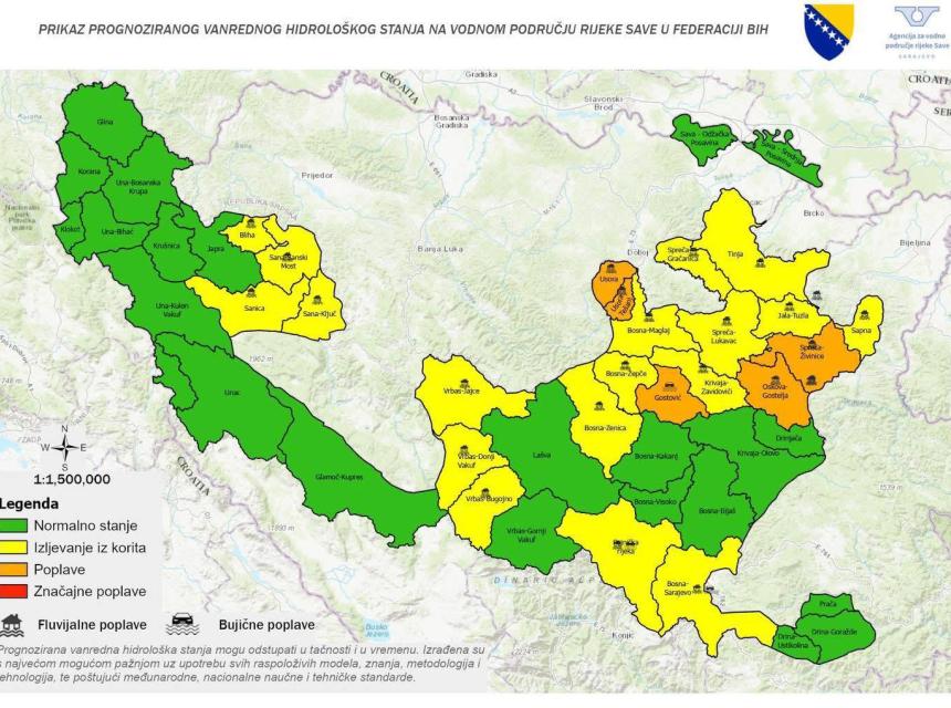 Vanredno hidrološko stanje proglašeno je za kantone: Unsko-sanski, Srednjobosanski, Zeničko-dobojski, Tuzlanski i Kanton Sarajevo.