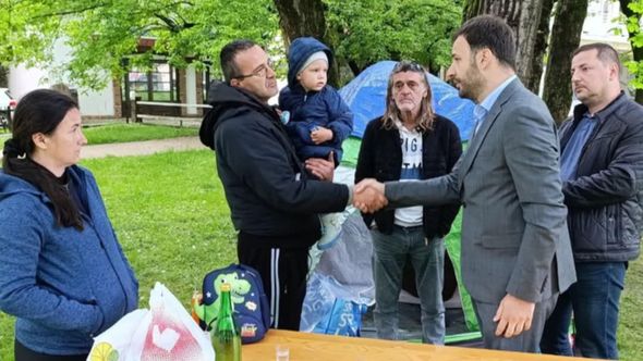 Porodica Branković iz Prijedora, kojoj je u nedavnim poplavama sve uništeno i danas protestuje ispred Gradske uprave, gdje su postavili šator u kojem spavaju, uprkos kiši i hladnoći. Traže hitnu pomoć iz gradskih i entitetskih vlasti, jer kako kažu nemaju gdje biti. Voda im je odnijela sve što su godinama stvarali.