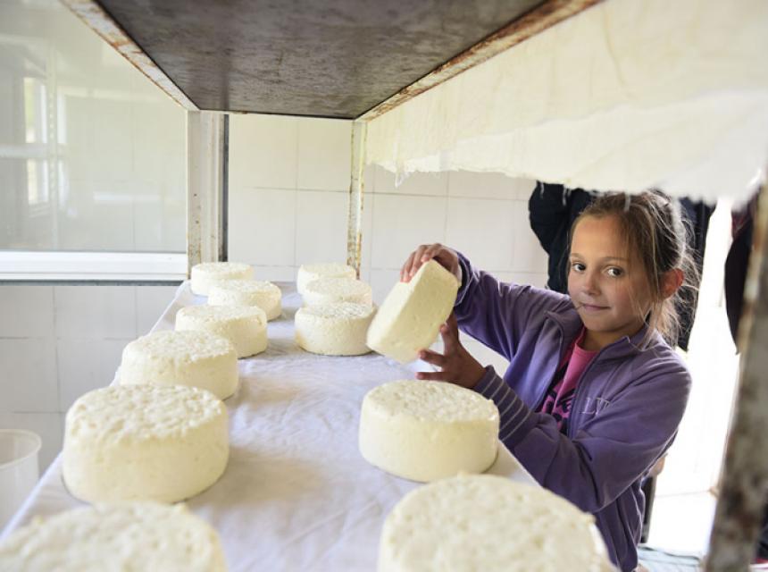 Ponosna majka kaže da čim dođu kući one znaju šta im je raditi. Jedna pomaže u sirenju, druga okreće sir koji se suši, treća čisti. A malena Petra nas je na kraju našeg druženja zajedno s ocem Zdravkom odvela do sušane i pokazala kako ona radi oko sira.