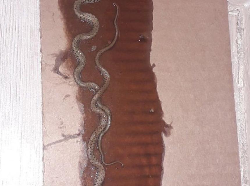 - Ujutru kad je svanulo, mama je izvadila cijeli laminat iz hodnika i bacila misleći da je ispod rupa i kupila novi. Zamazala je pukotinu kod ulaznih vrata koja je jako mala. Mislili smo da je problem riješen, kad poslije nekoliko minuta, mama je opet primijetila zmiju na novom laminatu kako se migolji.