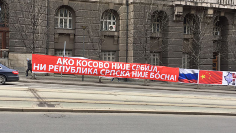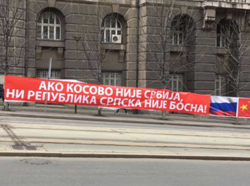 - Pitamo Ivicu Dačića da li je to politika koju kao ministar vanjskih poslova zastupa? Je li priča o „korekciji granica“ između Srbije i Kosova samo uvod u novi sukob u Bosni i Hercegovini? Ako ne stoji iza navedenog transparenta i ratnohuškačke poruke koja se iza njega krije, pitamo zbog čega kontroverzni transparent nije uklonjen.