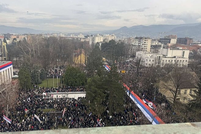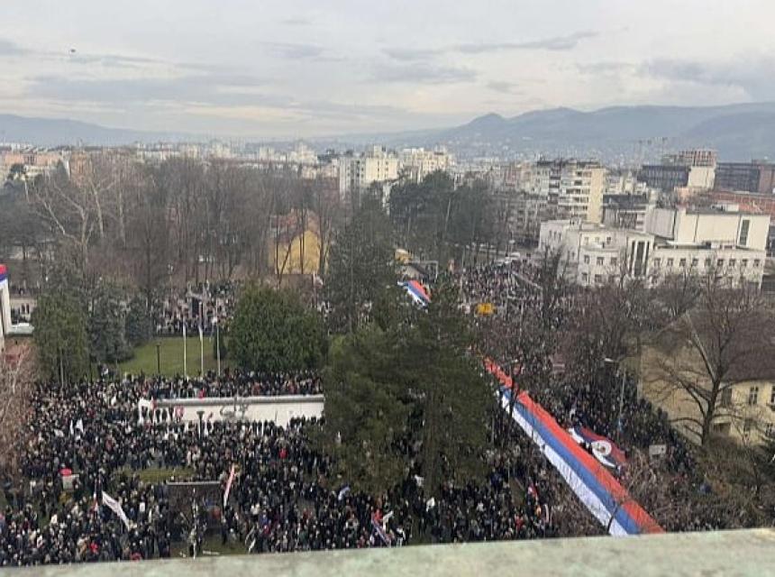 Ispred Narodne skupštine RS se održava miting podrške predsjedniku Republike, Srpskoj i njenim institucijama. Na miting je oko 16.30 došao Milorad Dodik, predsjednik RS, u društvu Željke Cvijanović, srpskog člana Predsjedništva BiH, Radovana Viškovića, premijera Srpske, Nenada Stevandića, predsjednika Narodne skupštine RS, ministara u Vladi RS…