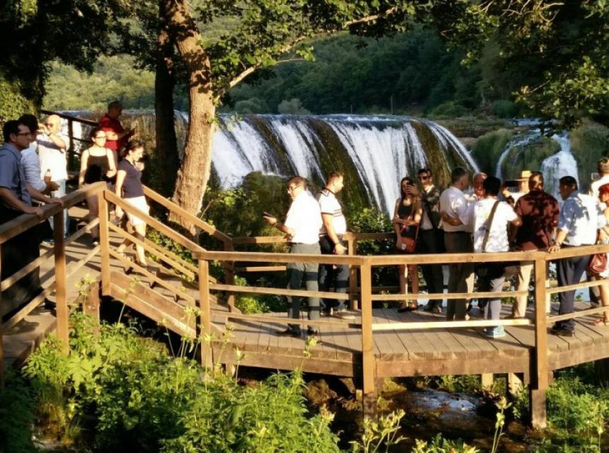 Visoke zvanice Martin Pammer, ambasador Republike Austrije u našoj zemlji, Ivan del Vechio, ambasador Hrvatske, Tomaš Szunyog i Jan Pšenica, ambasadori Ćeške i Slovačke u BiH imali su priliku da zajedno obiđu Štrbački buk i Martin Brod, lokalitete koje je Državna komisija za suradnju sa UNESCO-om predložila na Listu zaštićene prirodne baštine ove svjetske organizacije. Pored domaćina direktora NP „Una“Amarilda Mulića društvo su im pravili gradonačelnik Cazina Nermin Ogrešević i Predrag Praštalo, predsjednik Evropskog pokreta u BiH.