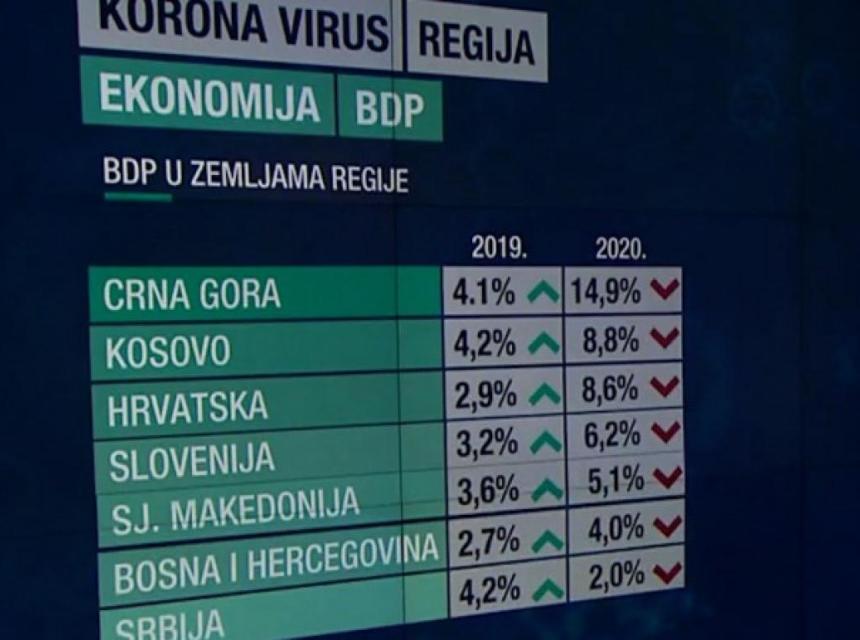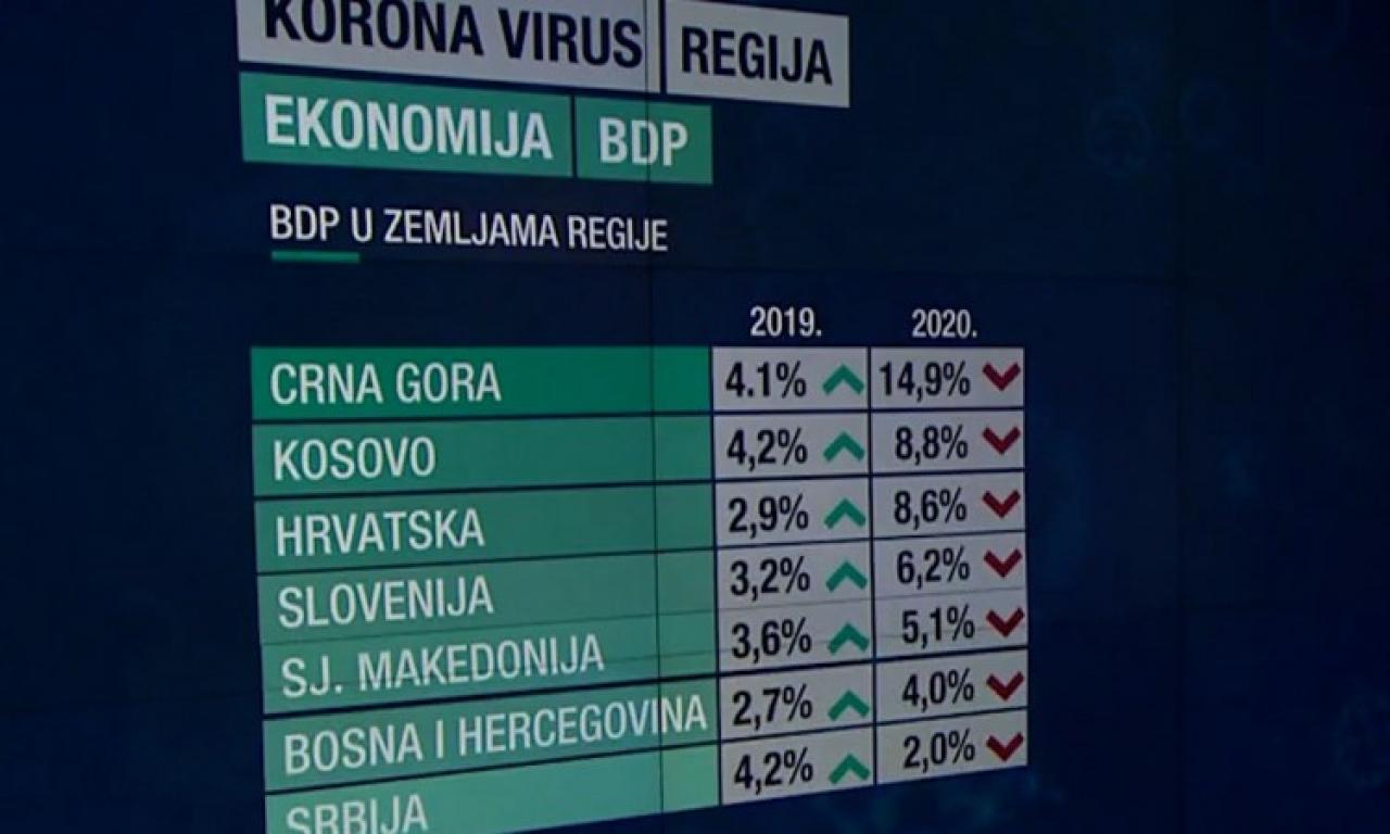 BDP Kosova je pao za 8,8 posto, Hrvatske za 8,6 posto, a Slovenije za 6,2 posto. BDP Sjeverne Makedonije je pao za 5,1 posto. Najbolje su se pandemijom u ekonomskom smislu nosili Bosna i Hercegovina, čiji je BDP u 2020. godini pao za četiri posto te Srbija, čiji je BDP pao za dva posto.