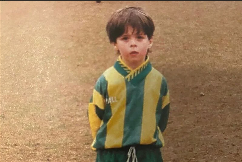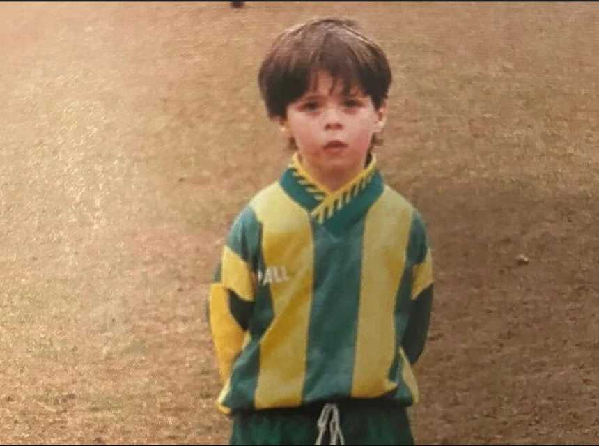 Na fotografiji se vidi dječak u zeleno-žutoj opremi kako pozira fotografu, a radi se o nogometašu Barcelone Miralemu Pjaniću.
