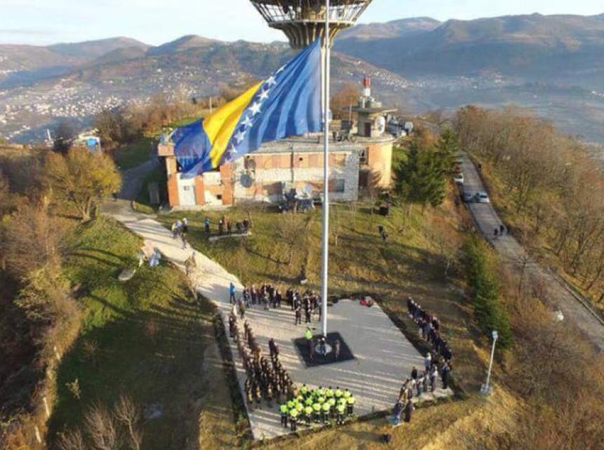 Zastava dimenzija 6×12 metara postavljena je na brdu Hum prošle godine u povodu 25. novembra, Dana državnosti BiH. Gradska uprava u subotu je naručila novu zastavu koja je danas postavljena uoči 6. aprila Dana Grada Sarajeva.
