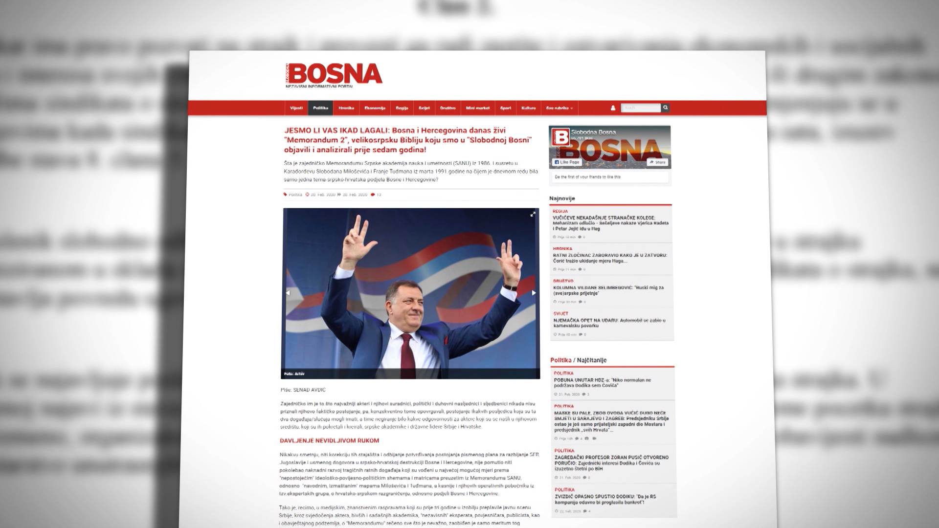 Još 2013. godine Slobodna Bosna objavila je sadržaj dokumenta Drugi memorandum Srpske akademije nauka i umetnosti koji je zapravo tajni plan za rastakanje državnih institucija BiH, navodno napravljen dvije godine kasnije.