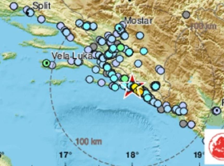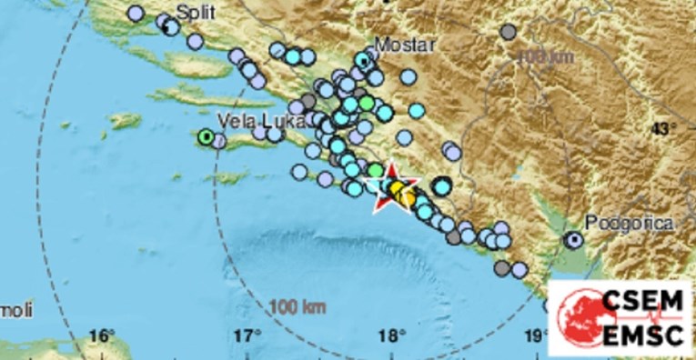 Epicentar potresa bio je 73 kilometara južno-jugoistočno od Mostara i 11 kilometara sjeverozapadno od Dubrovnika, piše EMSC.