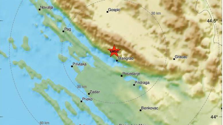 Širu zadarsku okolicu oko 12.55 sati uzdrmao je potres kojem je epicentar bio kod Starigrada. Prema prvim podacima, magnituda je bila 3,5 Richtera, navodi EMSC.