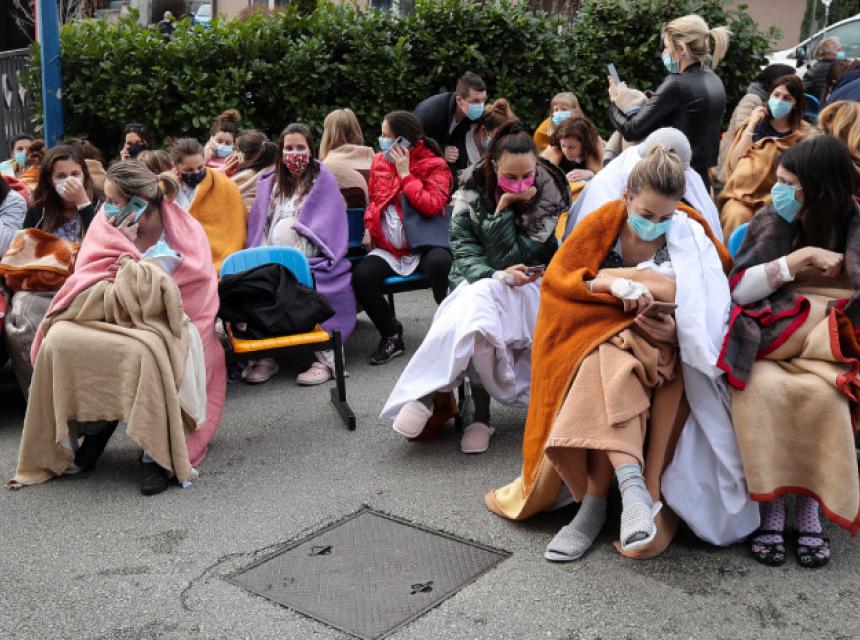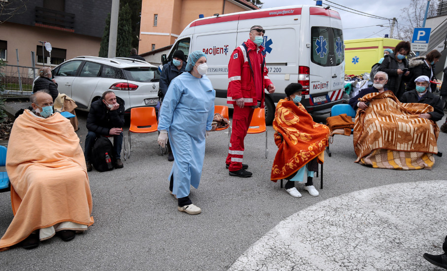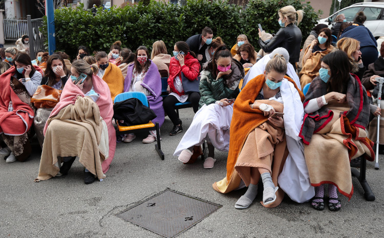 Nakon razornog potresa jačine 6,2 po Rihteru sa epicentrom 47 kilometara jugoistočno od Zagreba, odnosno tri kilometra od Petrinje, bolesnici i medicinsko osoblje izašlo je ispred bolnice