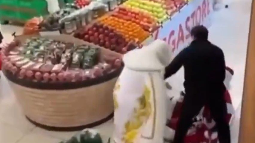 Dva Djeda Mraza, crveni i bijeli, sukobila su se u Bakuu, u Azerbejdžanu, u jednoj prodavnici.