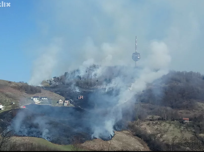 Požar na brdu Hum u Sarajevu proširio se zbog jakog vjetra, a pet vatrgoasnih ekipa bori se da obuzda vatrenu stihiju.