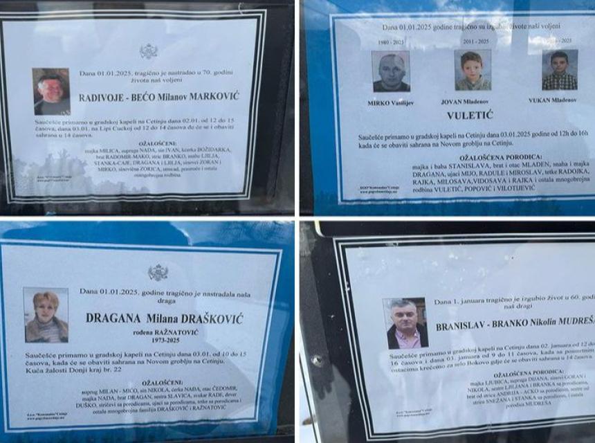 U Cetinju su postavljene smrtnovnice ubijenih, a Cafe del Montenegro (CdM) je objavio njihova imena.