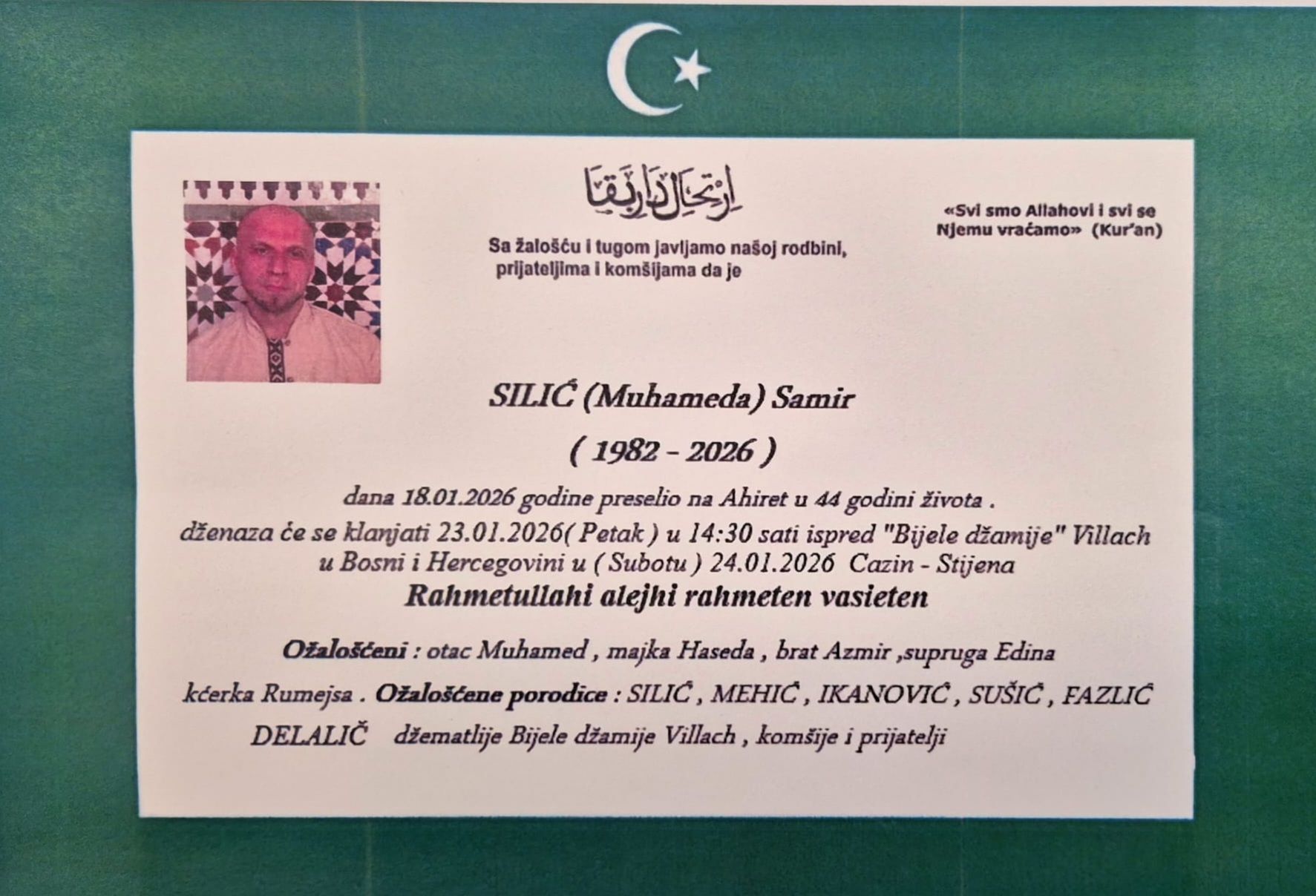 Sa žalošću i tugom javljamo našoj rodbini, prijateljima i komšijama da je SILIĆ (Muhameda) Samir dana 18.01.2026 godine preselio na Ahiret u 44 godini života.