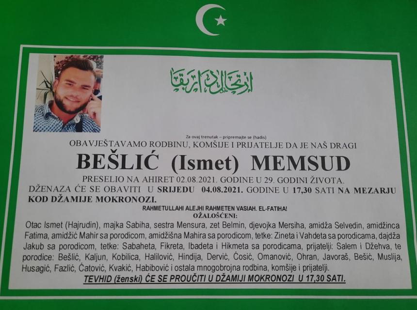 Riječ je o mladiću Memsudu Bešliću (29) iz Visokog.