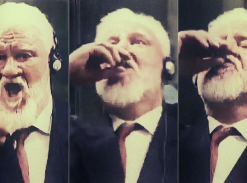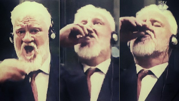 Isprva nije bilo jasno što se dogodilo, iako je svakome tko je gledao prijenos iz sudnice uživo bilo jasno kako se dogodilo nešto neuobičajeno. Sudac je pozvao sljedećeg optuženog Milivoja Petkovića da ustane i sasluša svoju presudu, koji je to učinio, a onda se u offu moglo čuti kako Praljak govori da je popio otrov i tada je nastala pomutnja. Praljak je svoje samoubojstvo zapravo pretvorio u reality show, u kojemu je skrivena bočica otrova figurirala kao standardni scenski rekvizit kojim se kod nesofisticirane publike navikle na poetiku Thompsonovih budnica i dramatične preokrete iz sapunica - a to je bila Praljkova ciljna skupina - može lako izazvati šok i probuditi emocije.