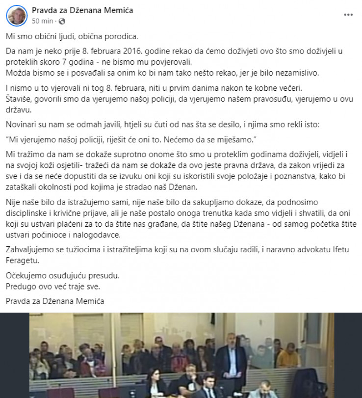 Nakon toga su se oglasili na Facebook stranici "Pravda za Dženana Memića".