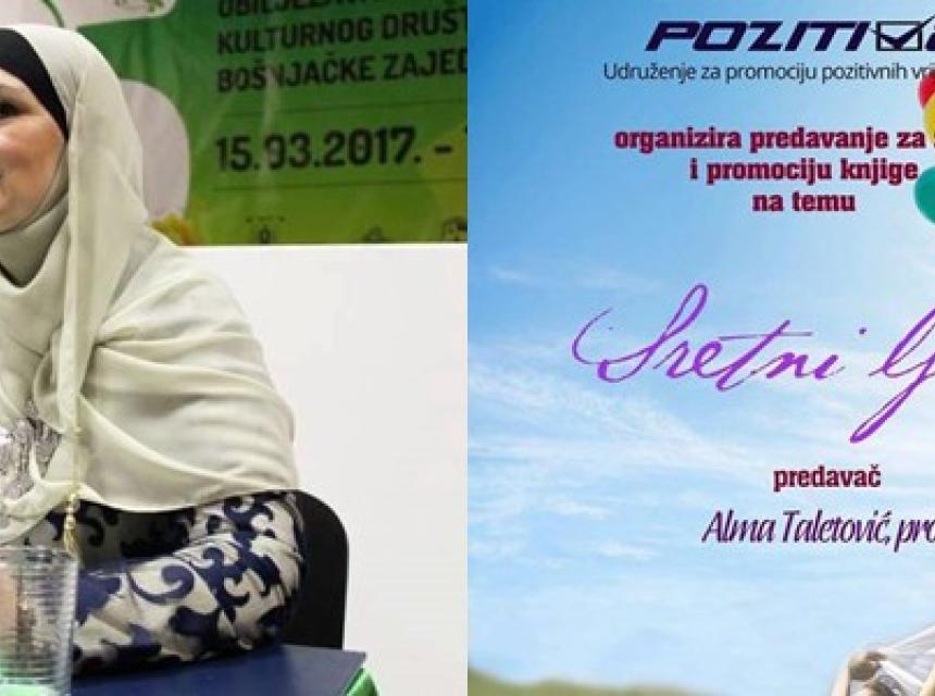 Ove nedjelje, 21. maja, u amfiteatru Medrese "Džemaluddin ef. Čaušević" od 18:30 sati bit će upriličeno predavanje za žene te promocija knjige autorice Alme Taletović.
