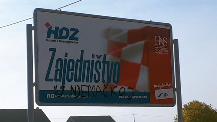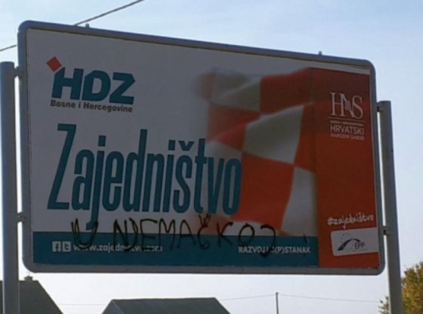 Plakati se lijepe i na nepredviđena mjesta, ali i oštećuju i „upotpunjuju“ dodatnim grafitima. Čak su nepoznati počinioci grafitima atakovali i na Dragana Čovića, zbog čega se HDZ BiH oglasio saopćenjem za javnost.