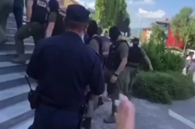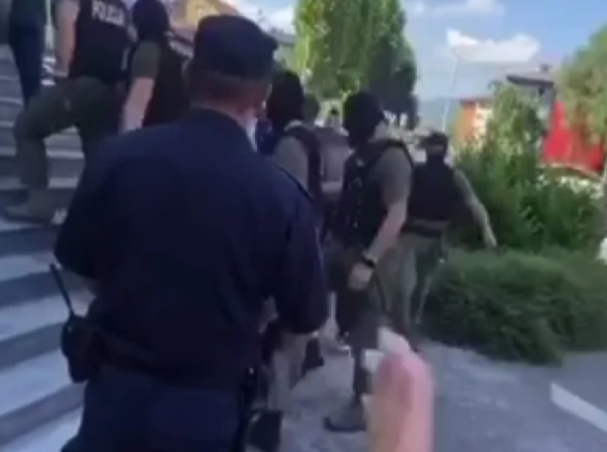 Pred Općinskim sudom u Kaknju danas se okupilo nekoliko desetina građana koji su pružili podršku uhapšenim policajcima, a neki od njih su im tokom privođenja u Općinski sud i uzvratili.