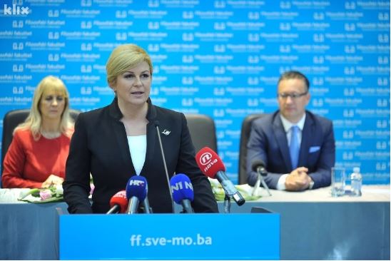 "Hrvatska je imala presudnu ulogu u slamanju velikosprske agresije i oslobodila velik dijelove BiH, te spriječila ponavljanje srebreničkog genocida u Bihaću na poziv Alije Izetbegovića. HVO i ARBiH suočila je Miloševića s potpunim vojnim porazom te ga prisilila da sjedne za pregovarački sto i time okončala rat u BiH", rekla je Grabar Kitarović.