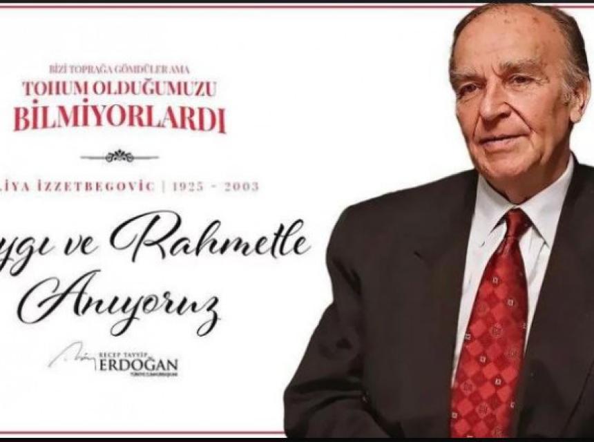 Erdoan je na svom Twitter profilu objavio fotografiju Izetbegovića uz njegovu poznatu rečenicu "Nas su zakopali u zemlju, ali nisu znali da smo sjeme".