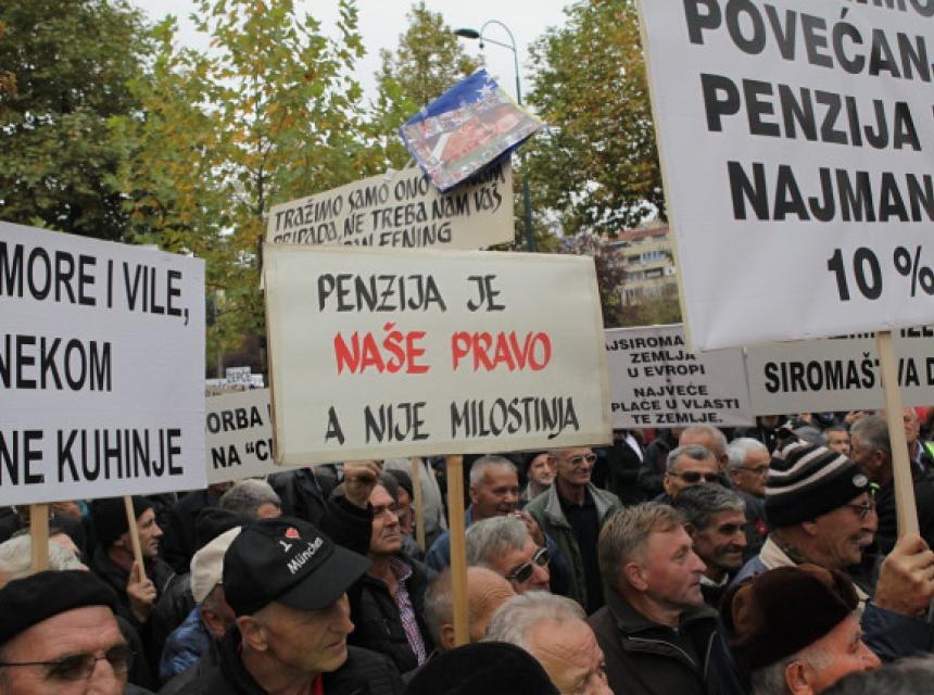 Penzioneri u FBiH 25. oktobra su održali proteste pred zgradom Vlade FBiH u Sarajevu tražeći da se što prije donese zakon o penzionom fondu, te da se u okviru tog zakona omogući povećanje penzija.