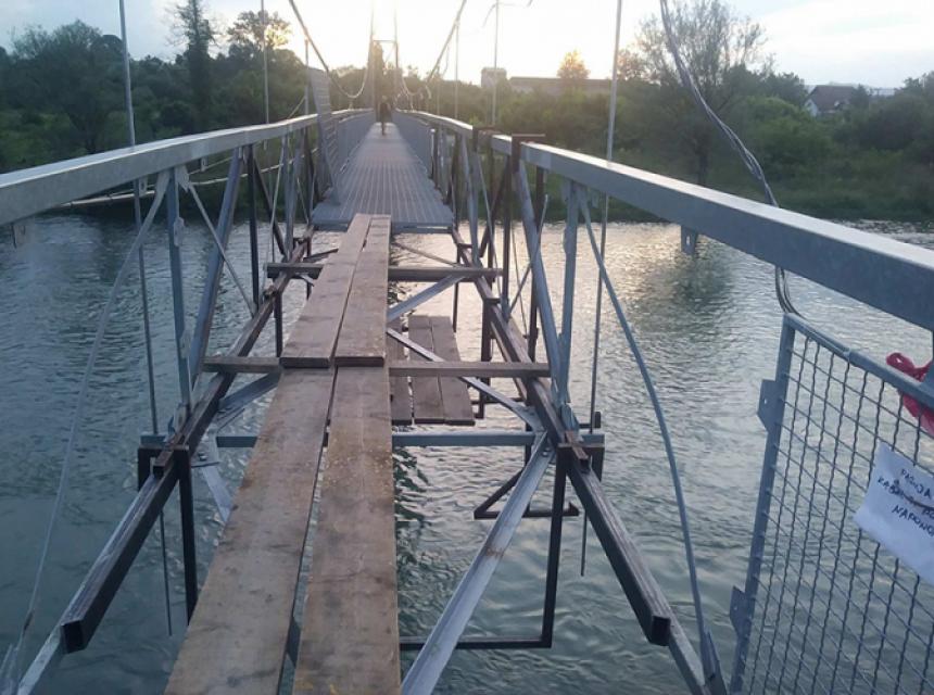 "Prelazak preko visećeg mosta u Priječanima je rizičan. U toku je izgradnja puta, te je saobraćaj dio dana obustavljen ili gradski prevoz kasni, pa mještani sve više prelaze preko dasaka na mostu", kaže on.