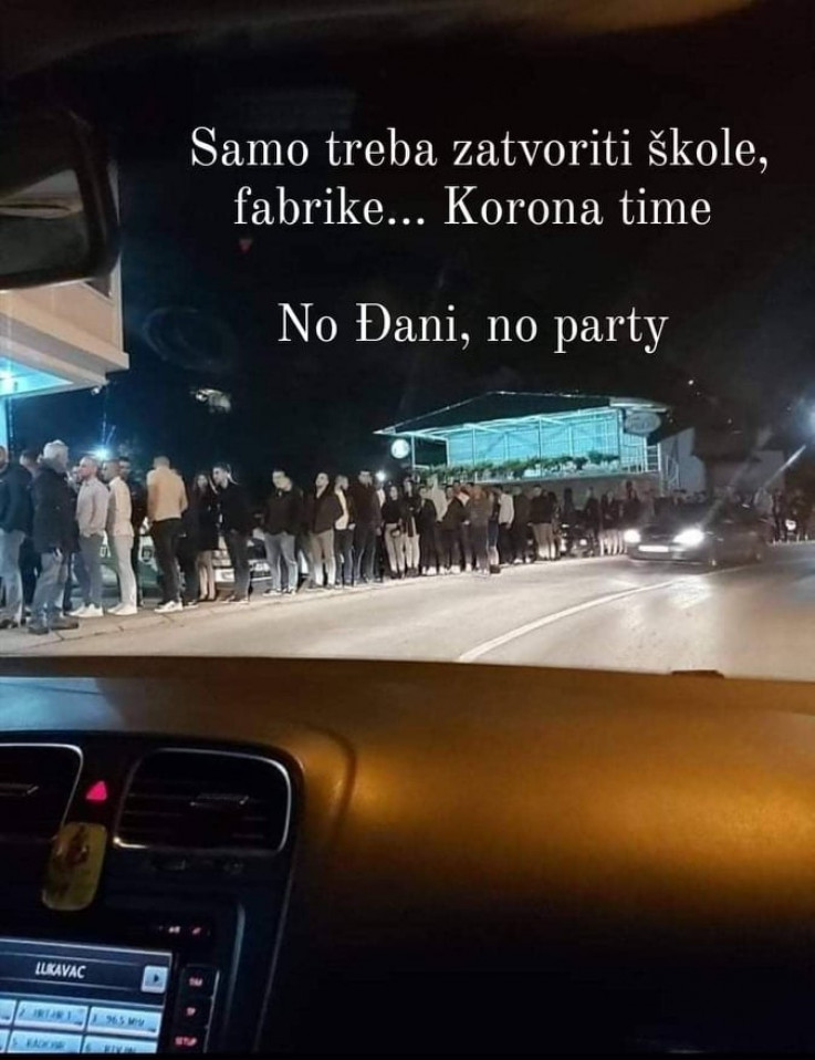 Kako se vidi na fotografijama, građani ne poštuju ni propisanu distancu od dva metra, a većina njih nema zaštitne maske. Također, krši se i naredba koliko ljudi može biti na otvorenom, a koliko u zatvorenom prostoru. Sigurno da je više od 100 osoba ispred kluba, a samim tim više 50 unutra.