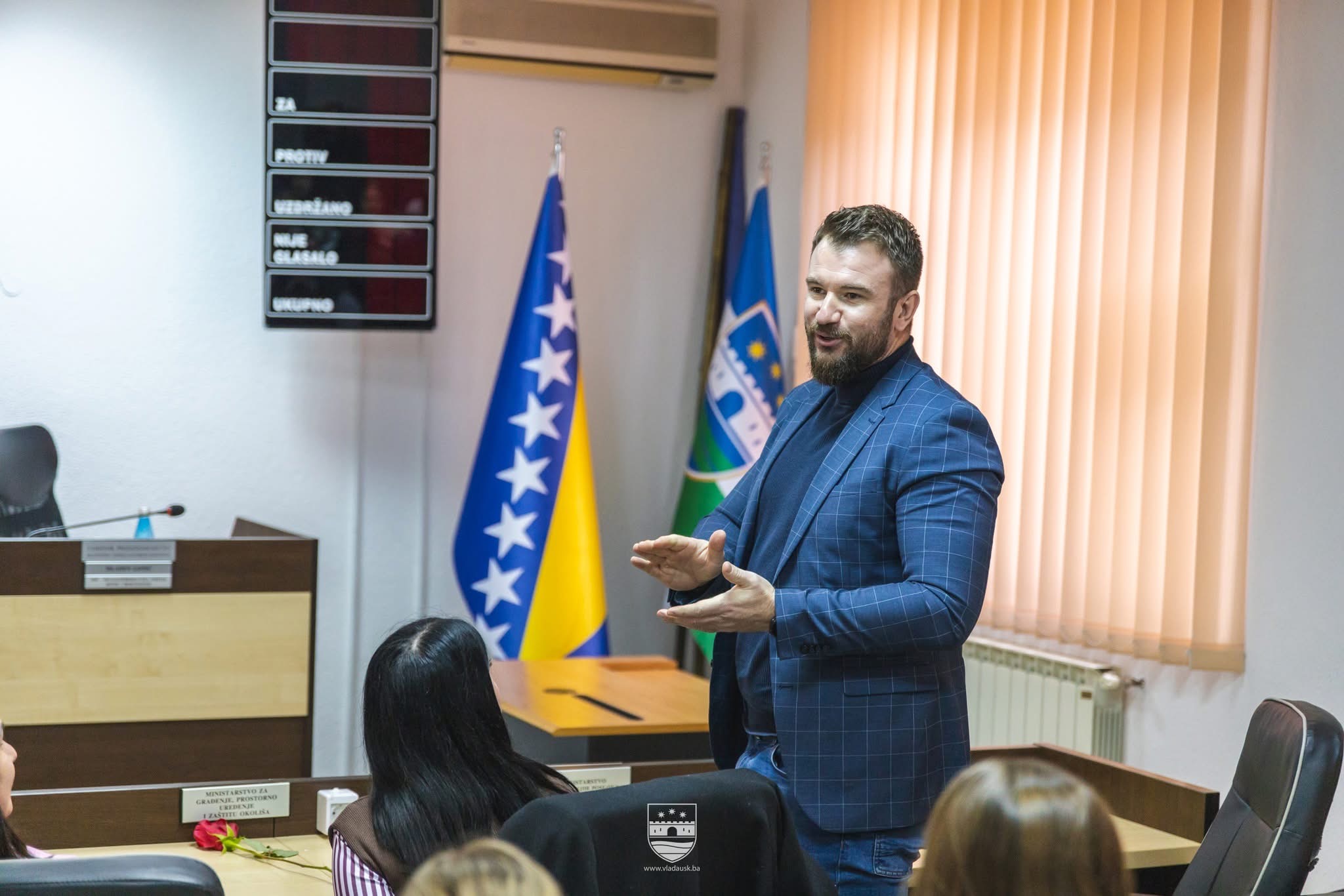 Premijer Ružnić je u razgovoru sa studentima istakao značaj znanja, truda i upornosti, naglasivši da upravo obrazovani i uspješni mladi ljudi predstavljaju najljepšu i najsnažniju sliku Unsko-sanskog kantona.