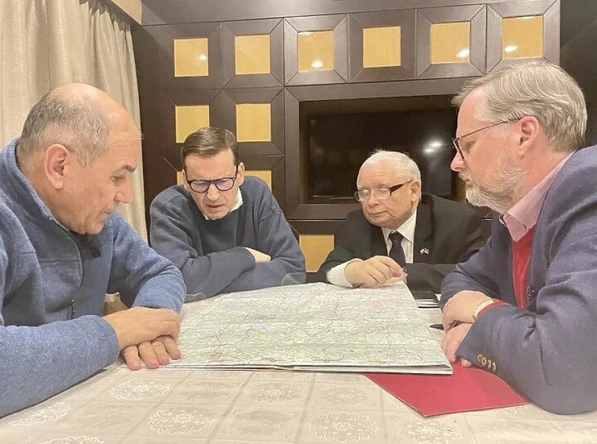 Janša, Morawiecki i Fiala, stigli su tokom dana na poljsko - ukrajinsku granicu, a zatim su vozom krenuli prema Kijevu, a njihov dolazak u glavni grad Ukrajine potvrdio je u premijer ove države Denis Šmihal.