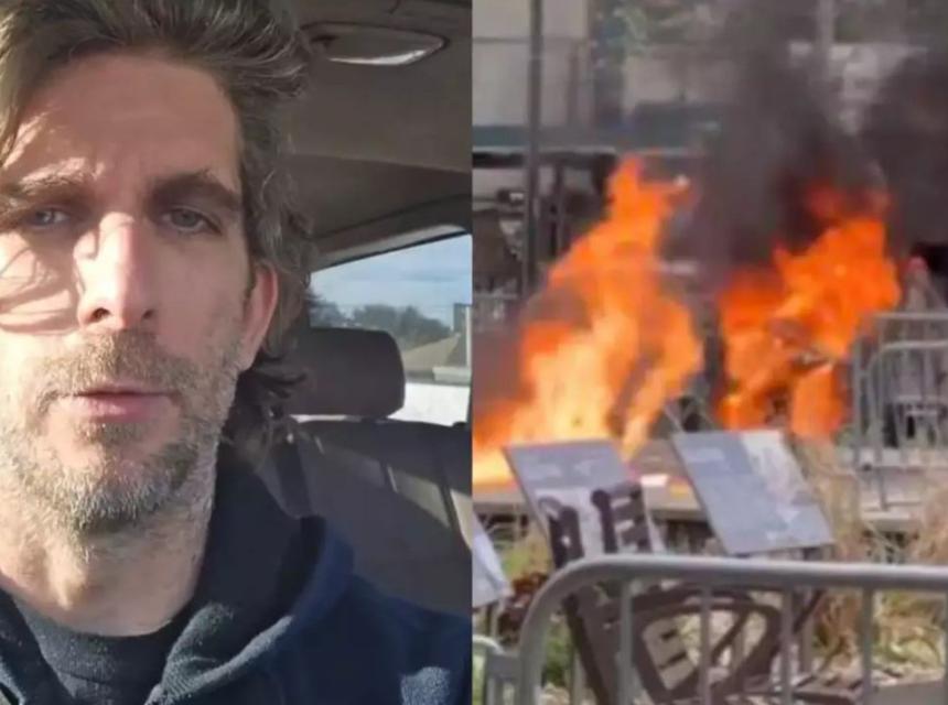 Muškarac u srednjim 30-im godinama iz Sent Augustina na Floridi je u zrak bacao pamflete s teorijom zavjere, prije nego što se zapalio na području određenom za prosvjednike za i protiv bivšeg američkgo predsjednika.