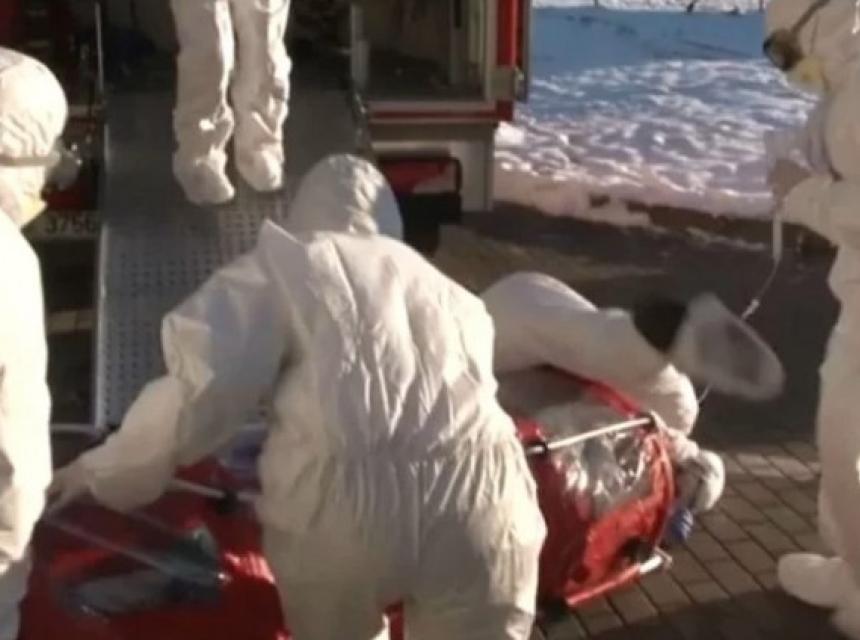 Naime, dok je medicinska ekipa u zaštitnim odijelima prenosila pacijenticu do vozila hitne pomoći u posebno izoliranoj ležaljci, jedan se liječnik poskliznuo na rampi kojom su je trebali unijeti u vozilo i pao preko ležaljke na pacijenticu koja je zajedno s ležaljkom završila na tlu.