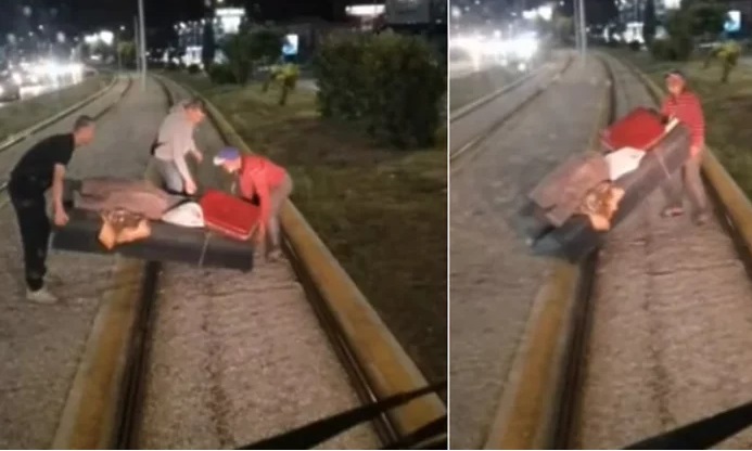 Nesvakidašnja scena se odvila preksinoć u sarajevskom naselju Stup kada je jedan muškaraca pokušao prenijeti kauč te je zapeo na tramvajskoj pruzi.