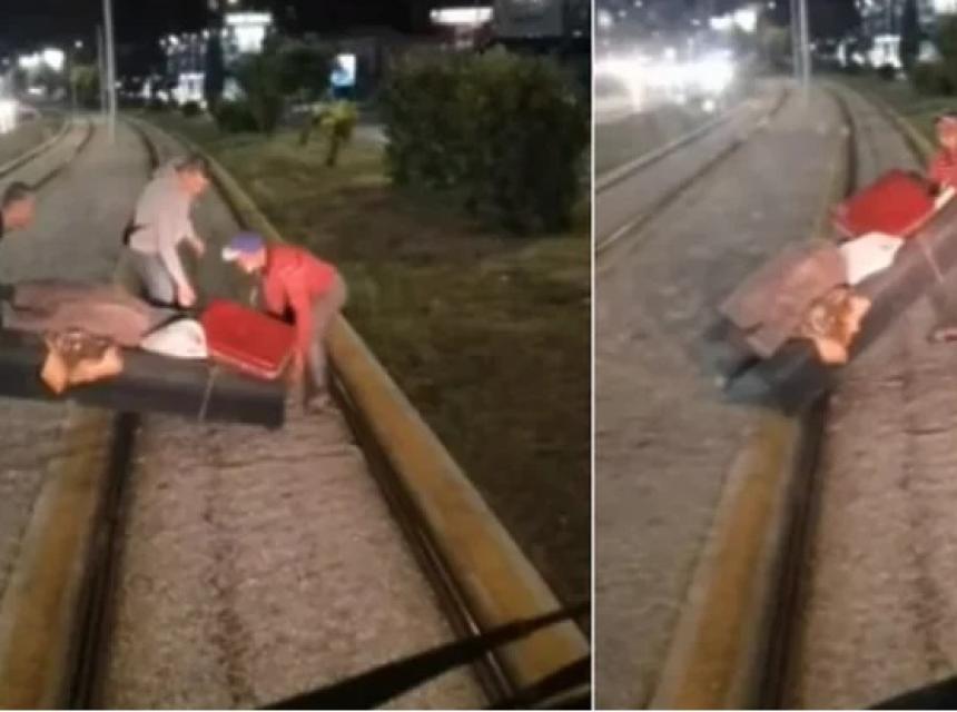 Osim što je blokirao tramvajski saobraćaj, stariji čovjek se izložio opasnosti prilikom pokušaja da prenese namještaj.