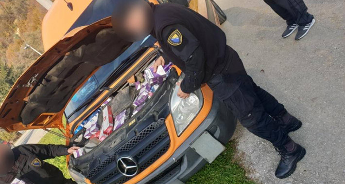 Prilikom detaljne kontrole otkriveno je da je unutrašnjost kombija potpuno preuređena na način da je stvoren prostor koji je služio za šverc cigareta. Otkriveno je 8.210 kutija cigareta koje su bile namijenjene crnom tržitu u BiH, jer nisu bile obilježene akciznim makicama UIO-a.