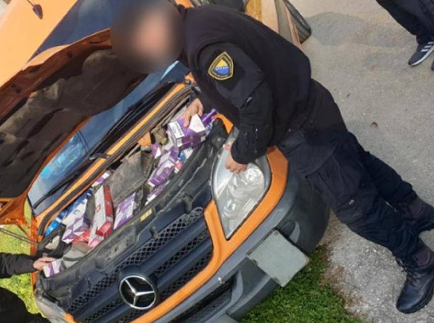 Ukupno 8.210 kutija cigareta, tržišne vrijednosti 41.050 KM, bilo je sakriveno u potpuno preuređenom kombiju koji je služio za šverc akcizne robe.